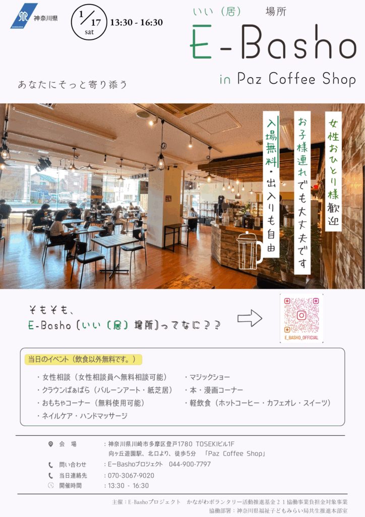 1/17(土)のE-Basho はPaz Coffee Shopで開催します。