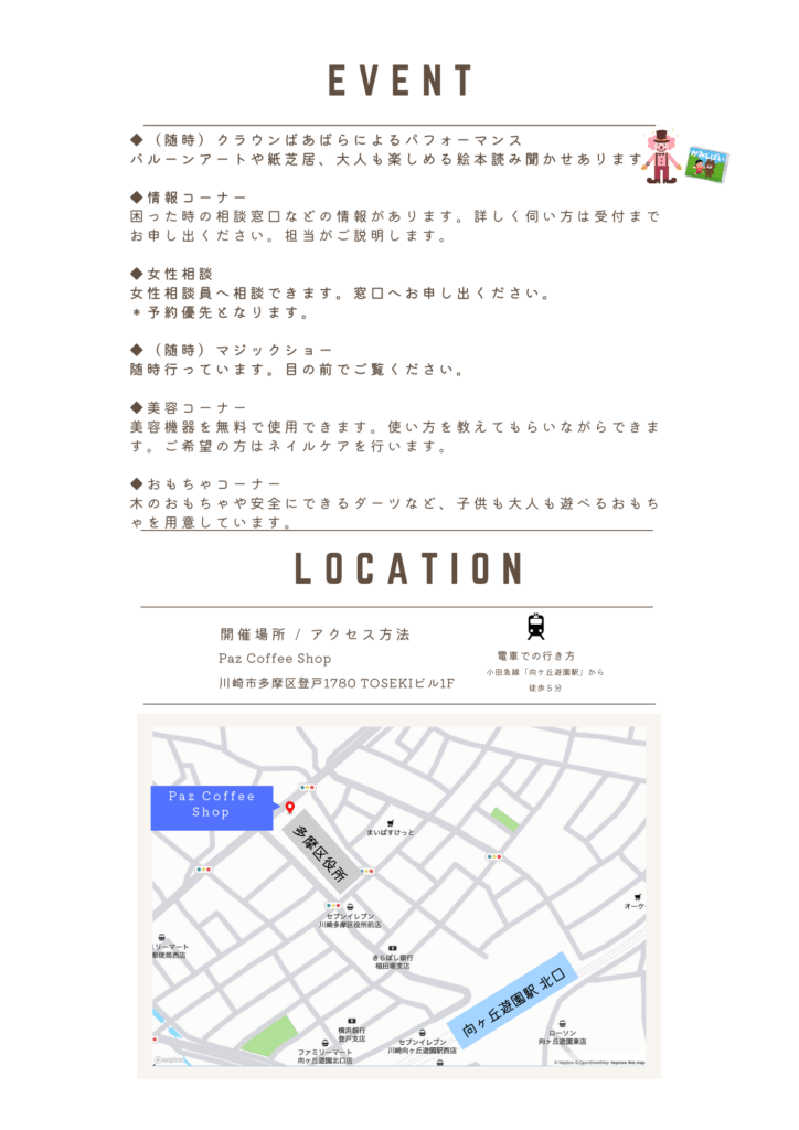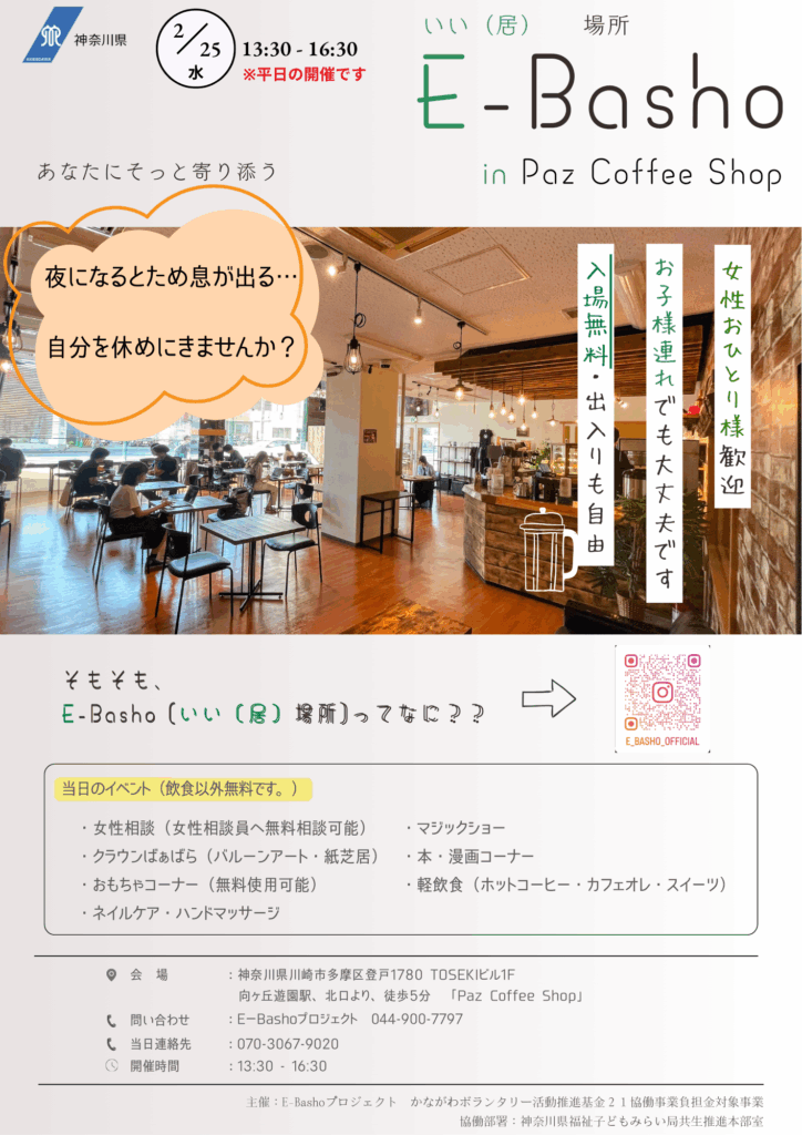 「ちょっとおしゃべりしてみたい」「大したことないけど聞いて欲しい」という方は是非ご来場ください。お待ちしています。